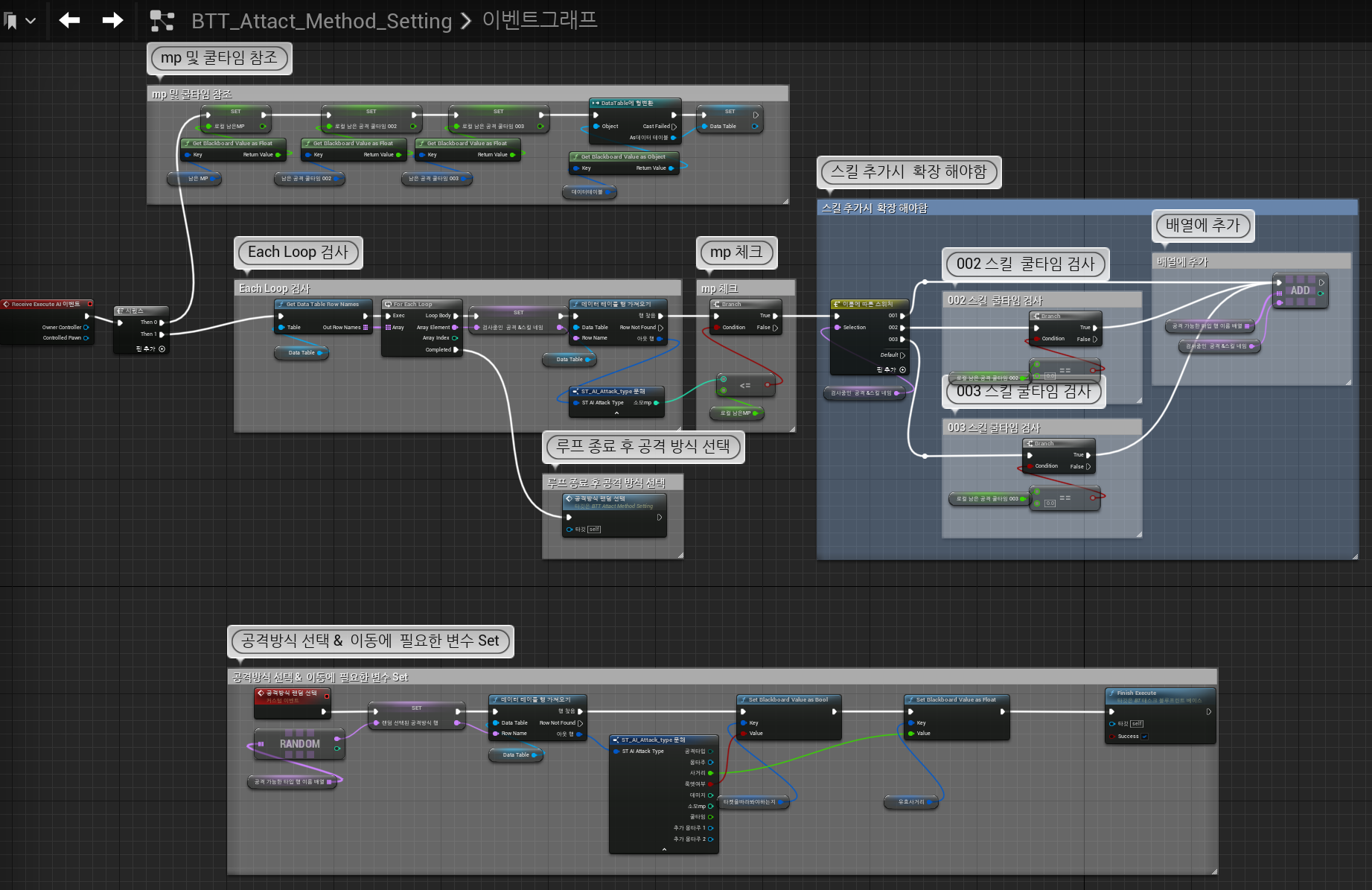 걸러낸 공격 방식 배열 중에서 랜덤으로 선택하고, 이동에 필요한 값을 미리 블랙보드에 올린다.